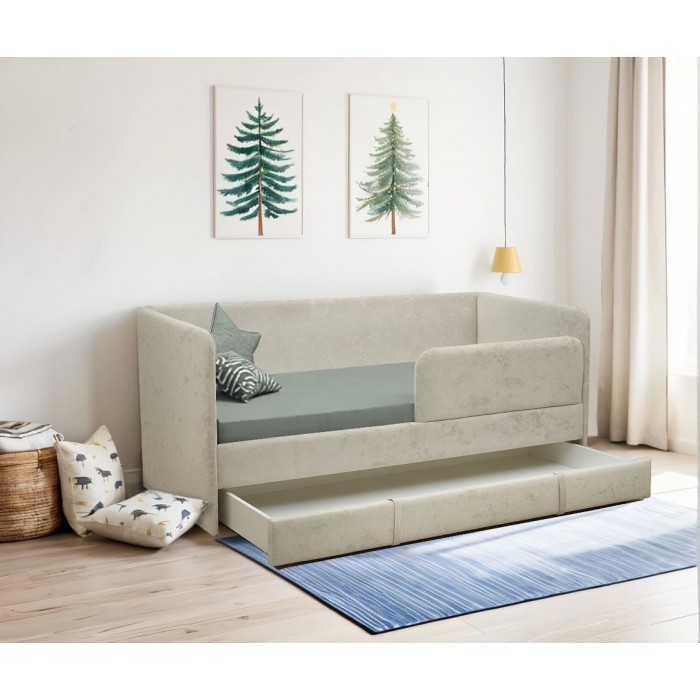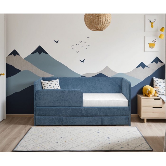 Диван-кровать оснащен ортопедическим основанием из березовых ламелей, которые обеспечивают правильное положение тела во время сна. Мягкий поролон и премиальная обивка из велюра RICH создают приятные тактильные ощущения и дарят непревзойденный комфорт. Для безопасности ребенка предусмотрен надежный бортик размером 820х310 мм.